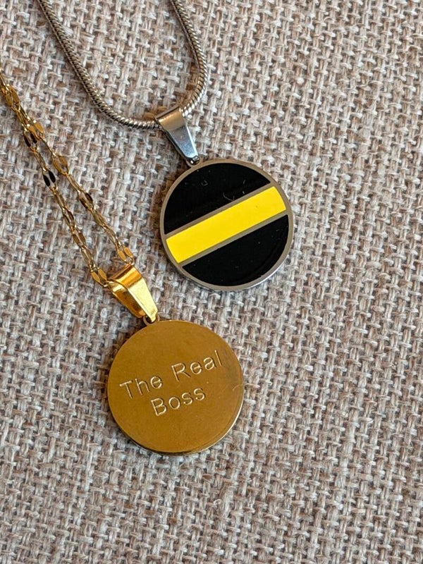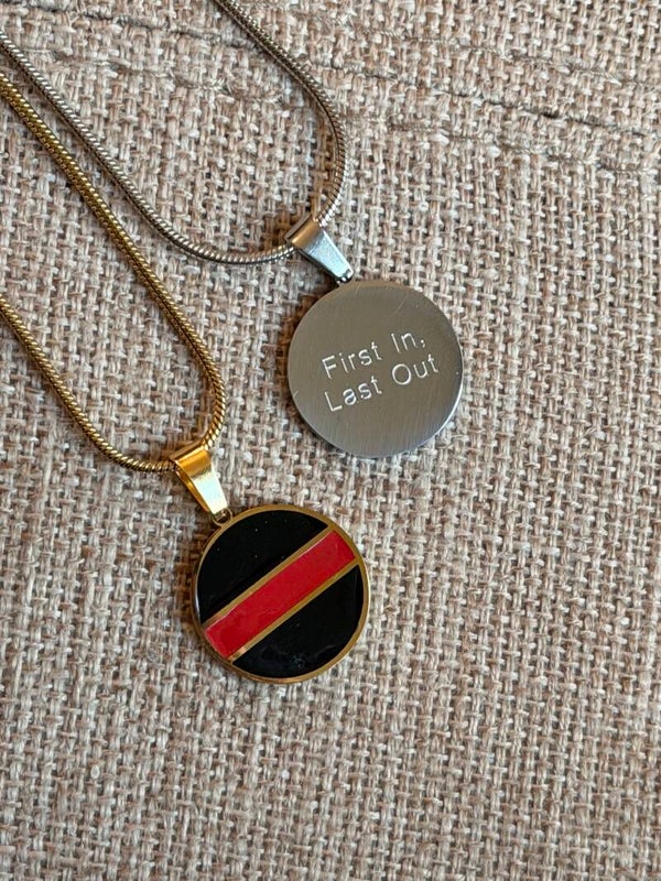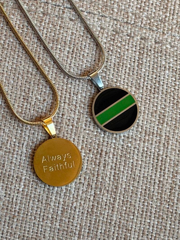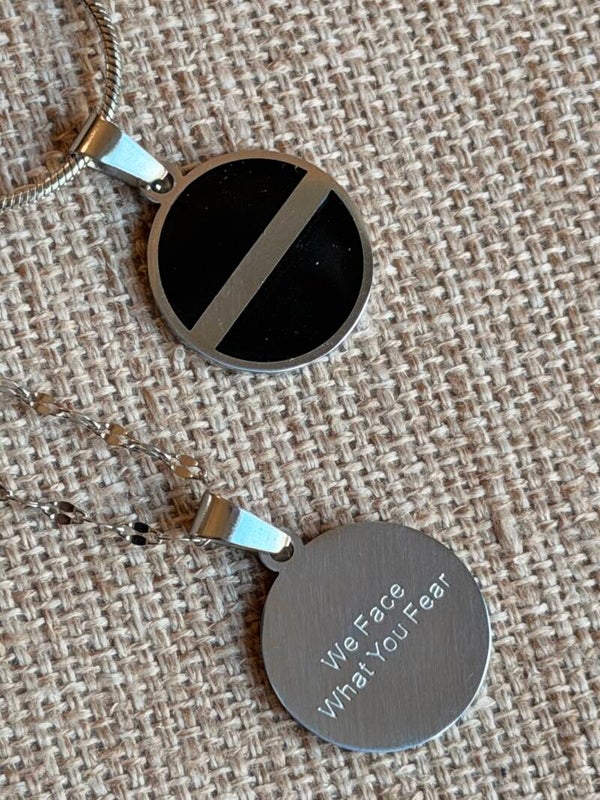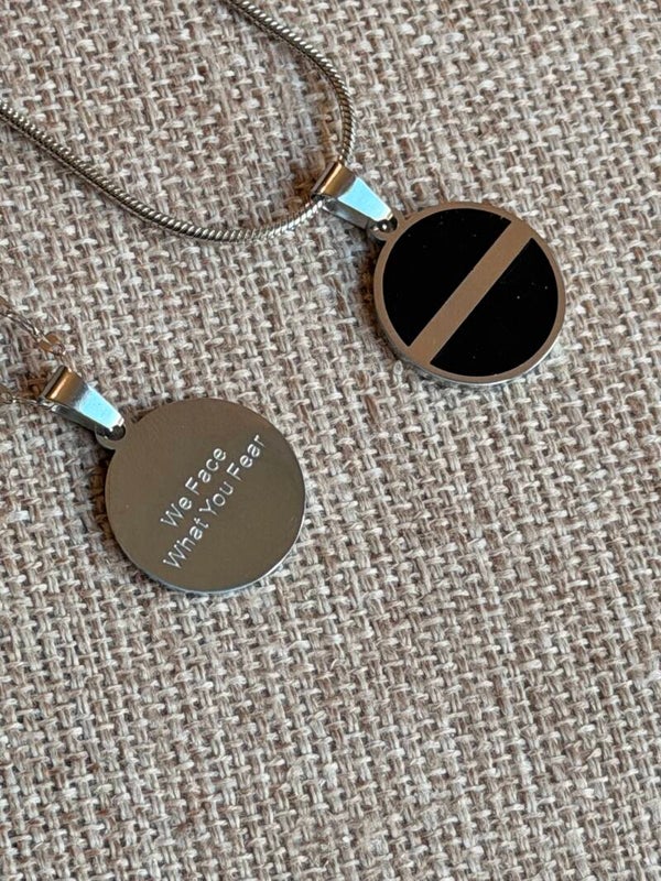 Thin line charms with the inscription for each one on the back. Charm is 20mm stainless steel. 18" chain with 2" extender included.