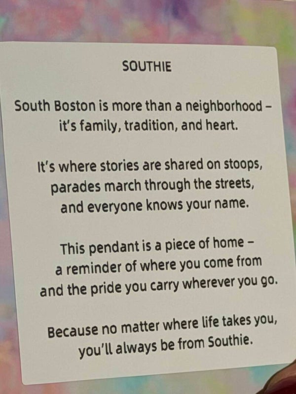 Southie 20mm stainless steel charm on 18" necklace.