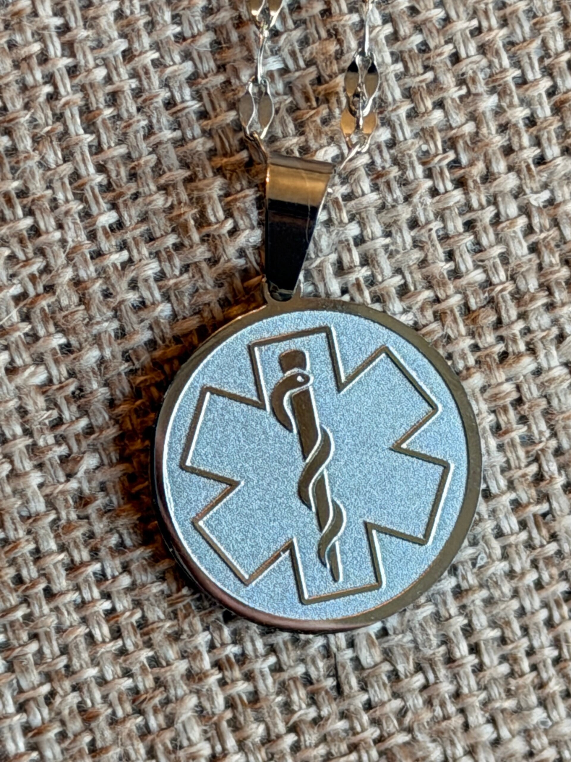 14kpvd or stainless EMS star of Life pendant on 18" diamond cut chain