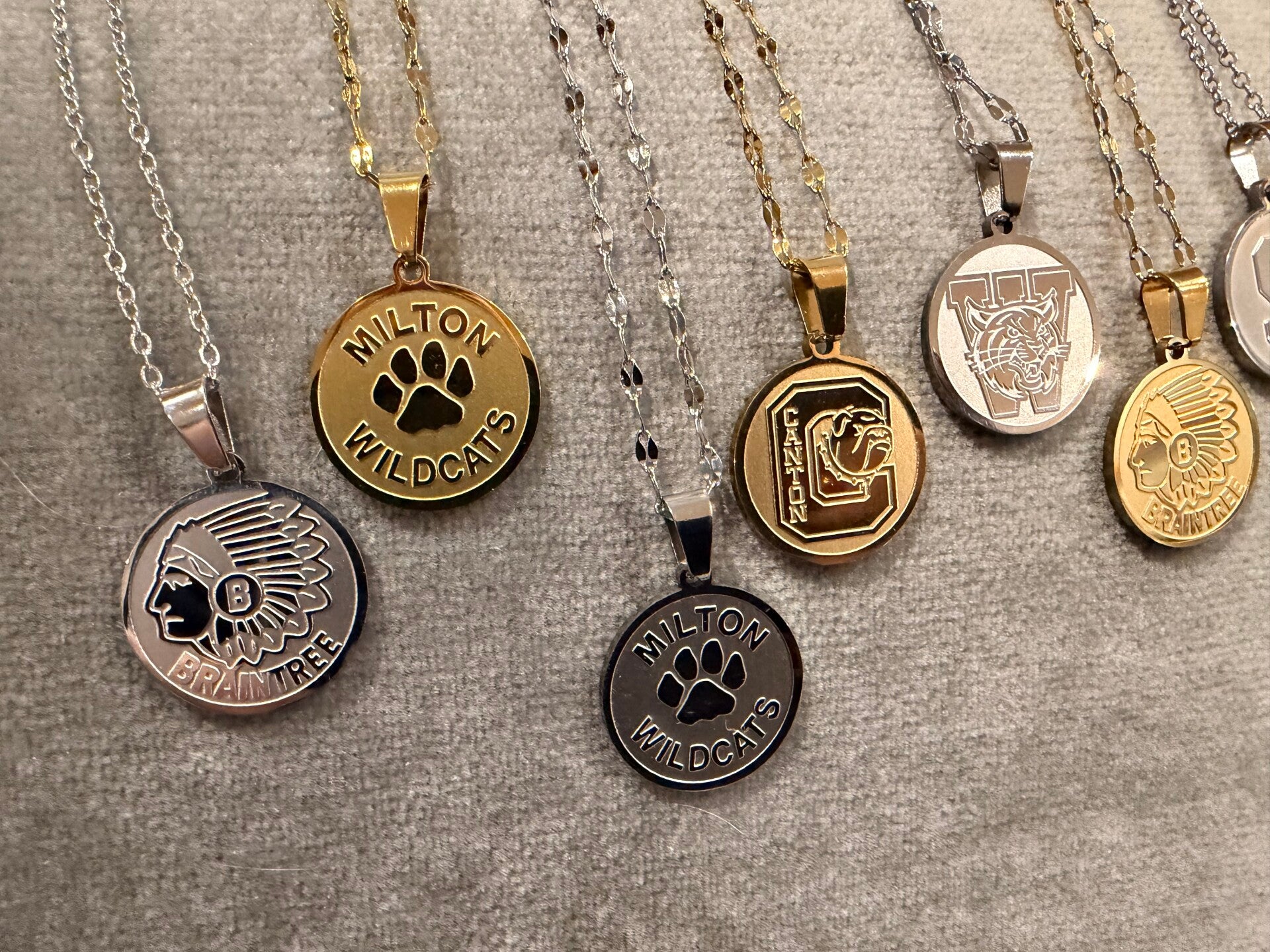 Custom cast Milton Wildcats pendant on an 18" chain cast in Stainless Steel with a story card attached or you can submit one after ordering to info@threadwellcollective.com